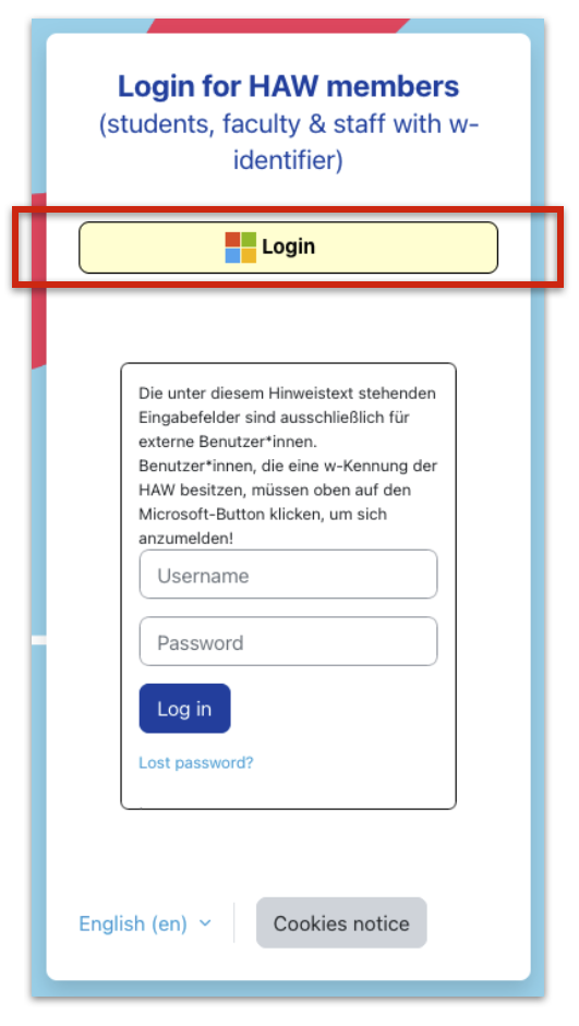 If you have questions about registering for the HAW Moodle or about the login in Moodle, please get in touch with your contact person at the HAW - see this list.