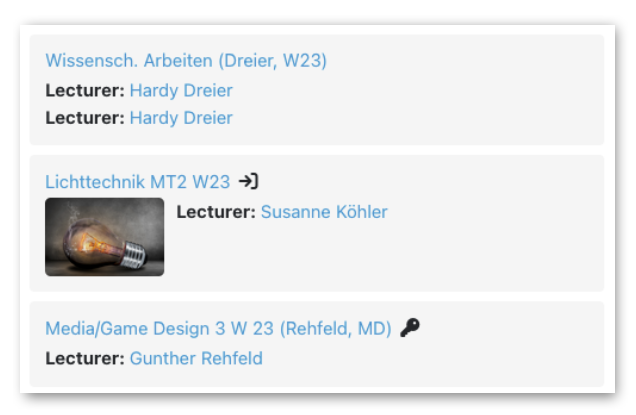• Key icon []: An enrolment key ("Einschreibeschlüssel", a password) is required to access this course room. You can obtain this from the respective lecturer.