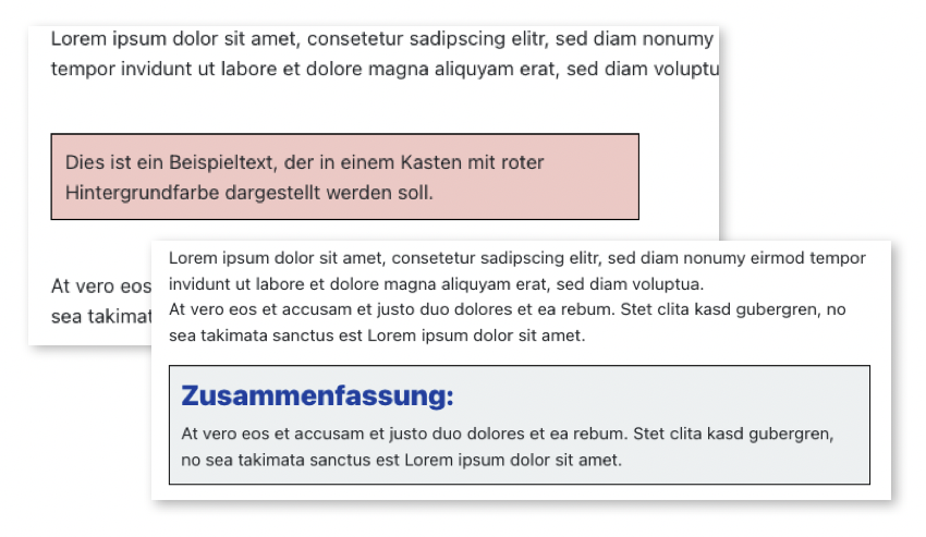 Heben Sie Textabschnitte durch farbig unterlegte Textblöcke hervor.