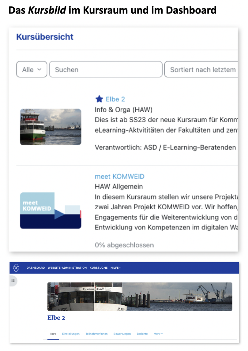 Mit dem Kursbild unterstützen Sie das schnelle Auffinden im Dashboard und geben Ihrem Kursraum einen charakteristischen visuellen Einstieg.
