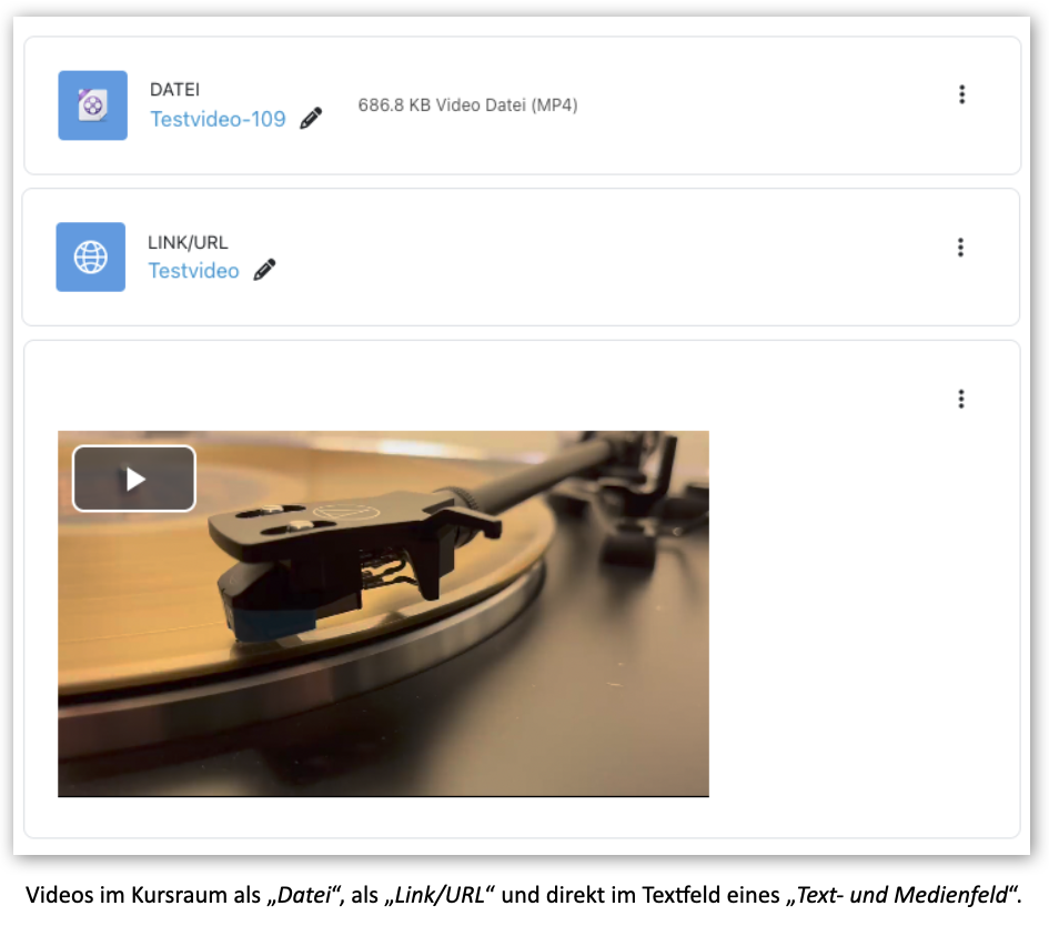 In Ihrem Kursraum können Videos auf drei Arten angeboten werden: