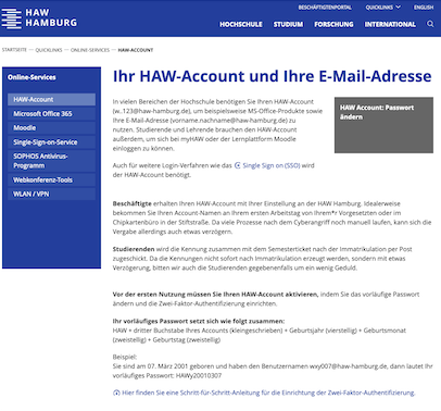 Account einrichten zur Nutzung der digitalen Infrastruktur der HAW